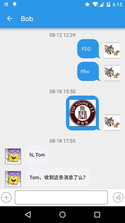 例如 Demo 中的 CustomUserProvider 这个类,它实现了 LCChatProfileProvider 接口,在 fetchProfiles 方法里加载了 Tom、Jerry 等人的信息。